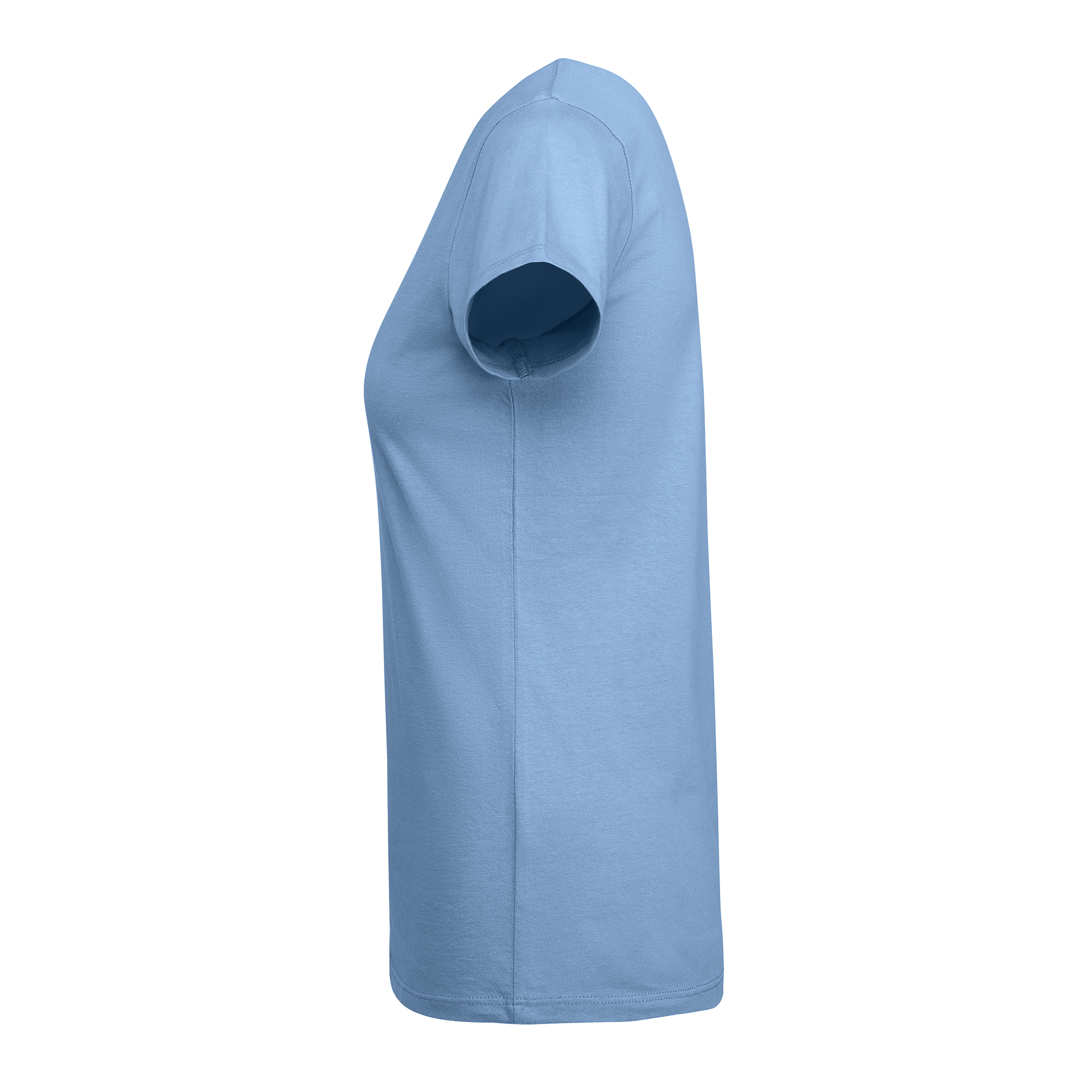 Camiseta de mujer entallada de manga corta en algodón orgánico certificado OCS. Cuello redondo en canalé 1×1. Cubrecosturas reforzado en cuello. Costuras laterales.