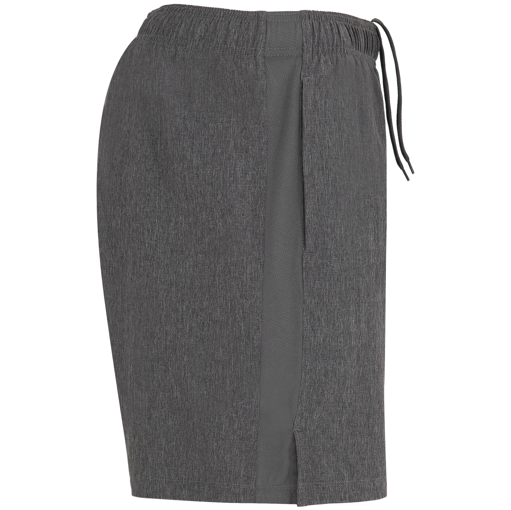Bermuda con dos tejidos y slip interior. Cinturilla elástica con cordón interior cruzado a contraste. Banda lateral e interior de la pierna en tejido transpirable. Dos bolsillos laterales. Apertura lateral en el bajo con forma asimétrica.