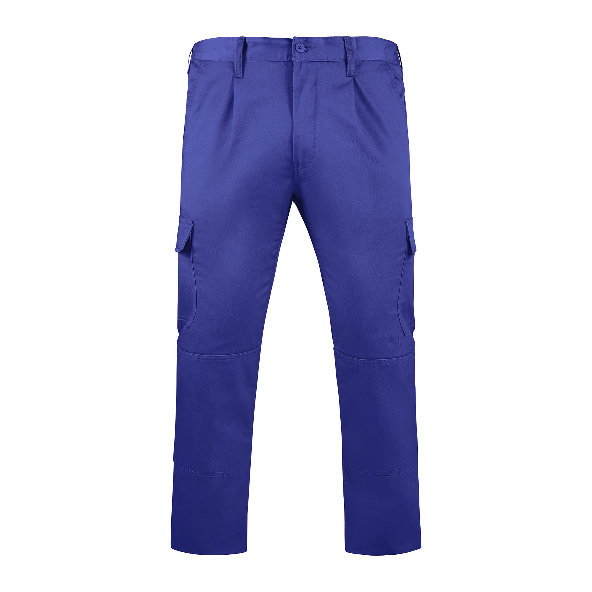 Pantalón largo laboral corte recto y tejido resistente. · Cintura ajustable elástica en parte trasera. · Dos bolsillos frontales. · Bolsillo funcional trasero con solapa y cierre velcro. · Dos bolsillos funcionales laterales con solapa y cierre velcro. · Refuerzo en entrepierna. · Doble tejido en rodilleras.