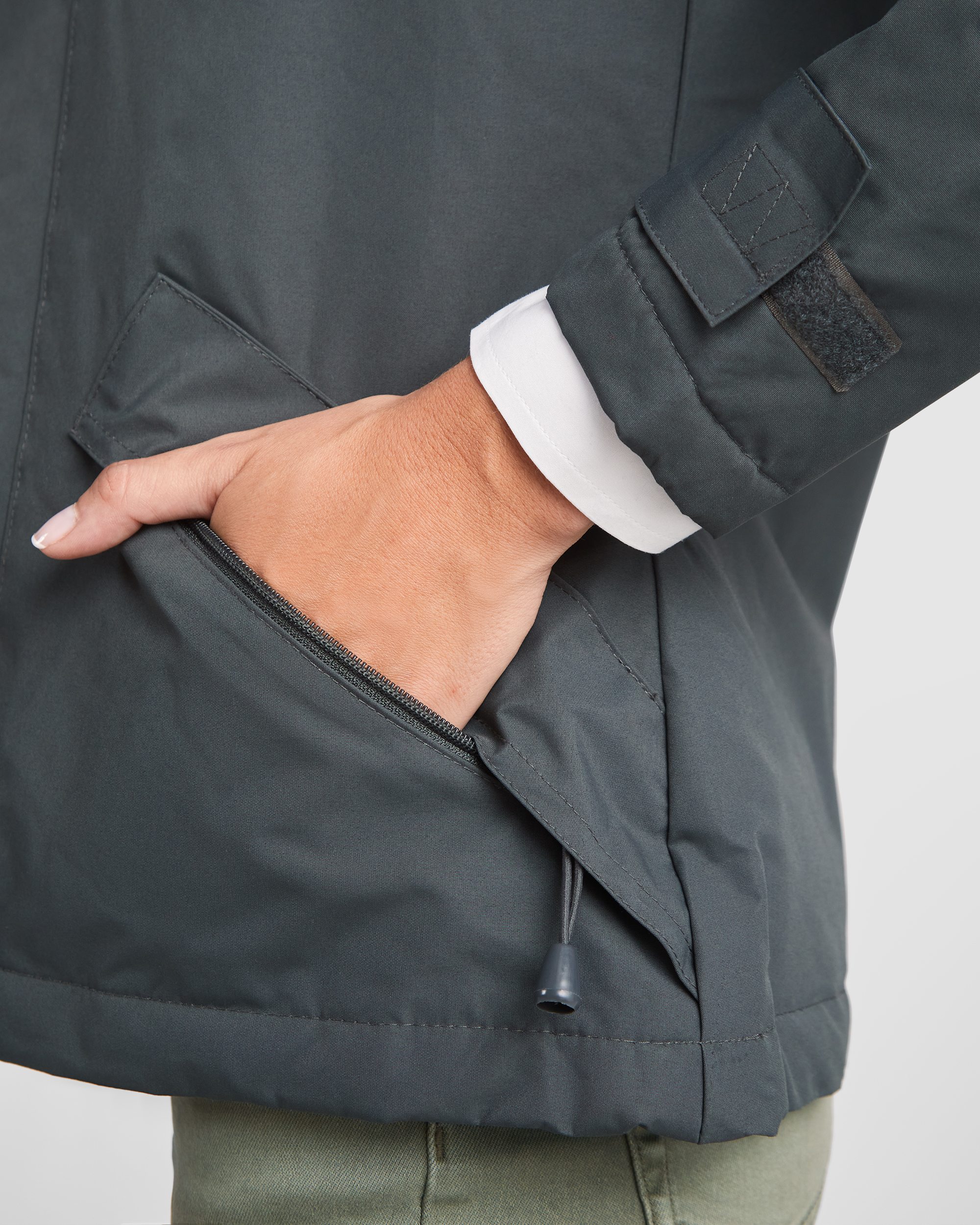 Parka acolchada entallada impermeable. ·Cuello alto con capucha plegada y extraíble en cuello con cierre velcro. ·Cremallera central inyectada a tono con solapa. ·Bolsillos exteriores con cremallera, solapa y tiradores. ·Puños ajustables con trabillas y velcro. ·Dos bolsillos interiores en pecho con cierre de velcro. ·Acceso interior para marcaje.