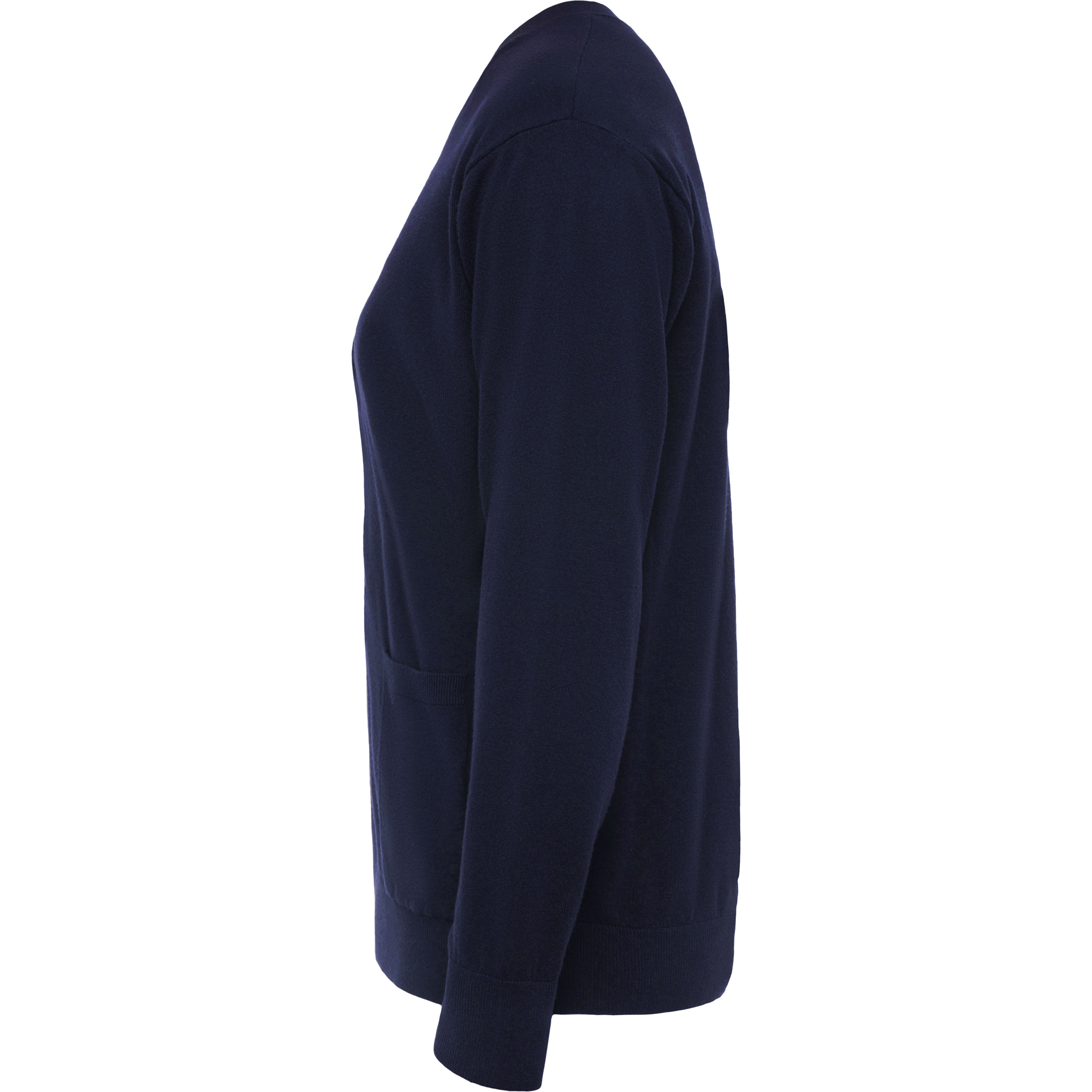 Chaqueta con escote de pico para mujer. · Tejido en punto suave. · Cierre central de cinco botones al tono. · Dos bolsillos de plastón. · Puños y cintura elásticos en punto canalé.