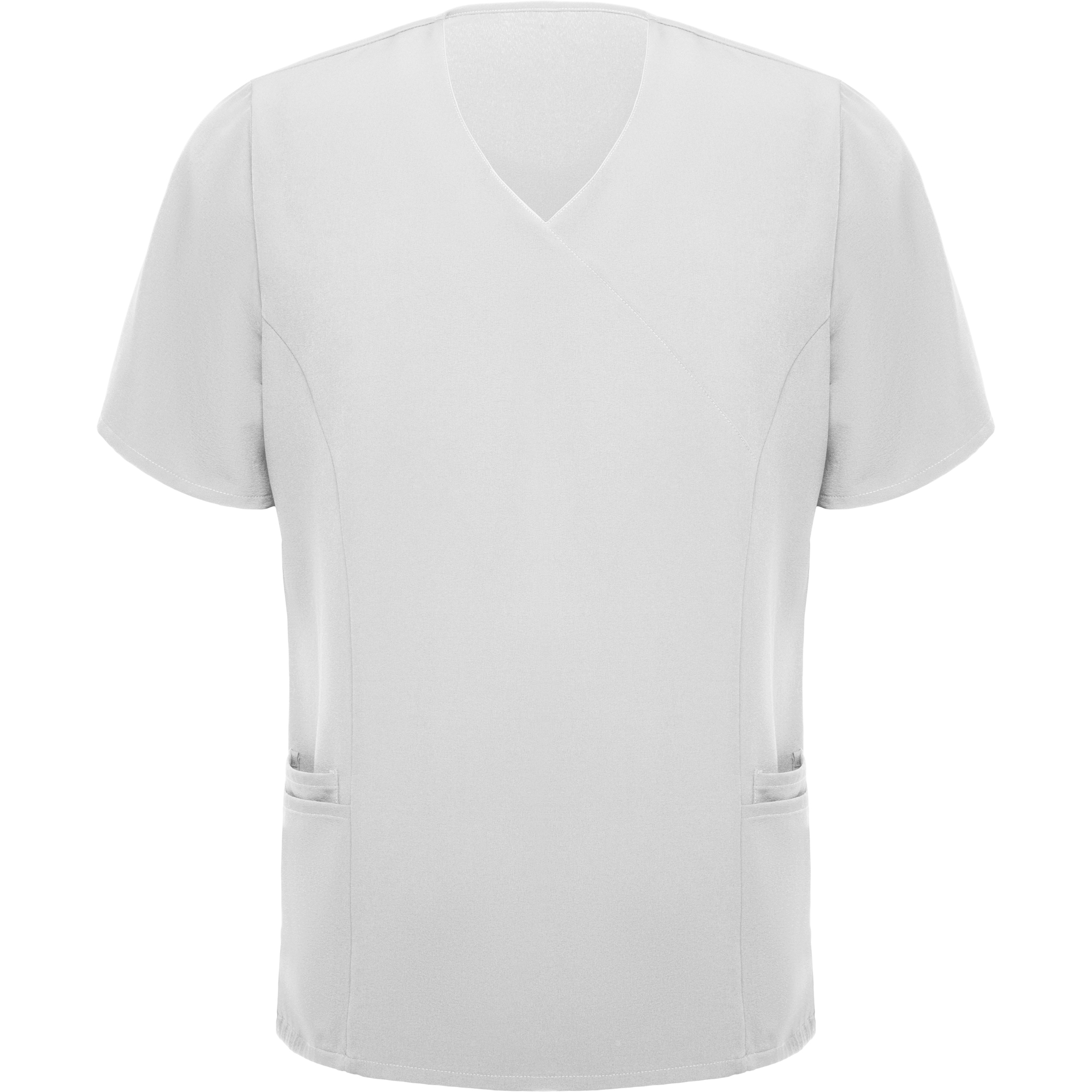 Casaca de servicios de manga corta. · Escote de pico cruzado. · Dos bolsillos franceses. · Aperturas laterales.