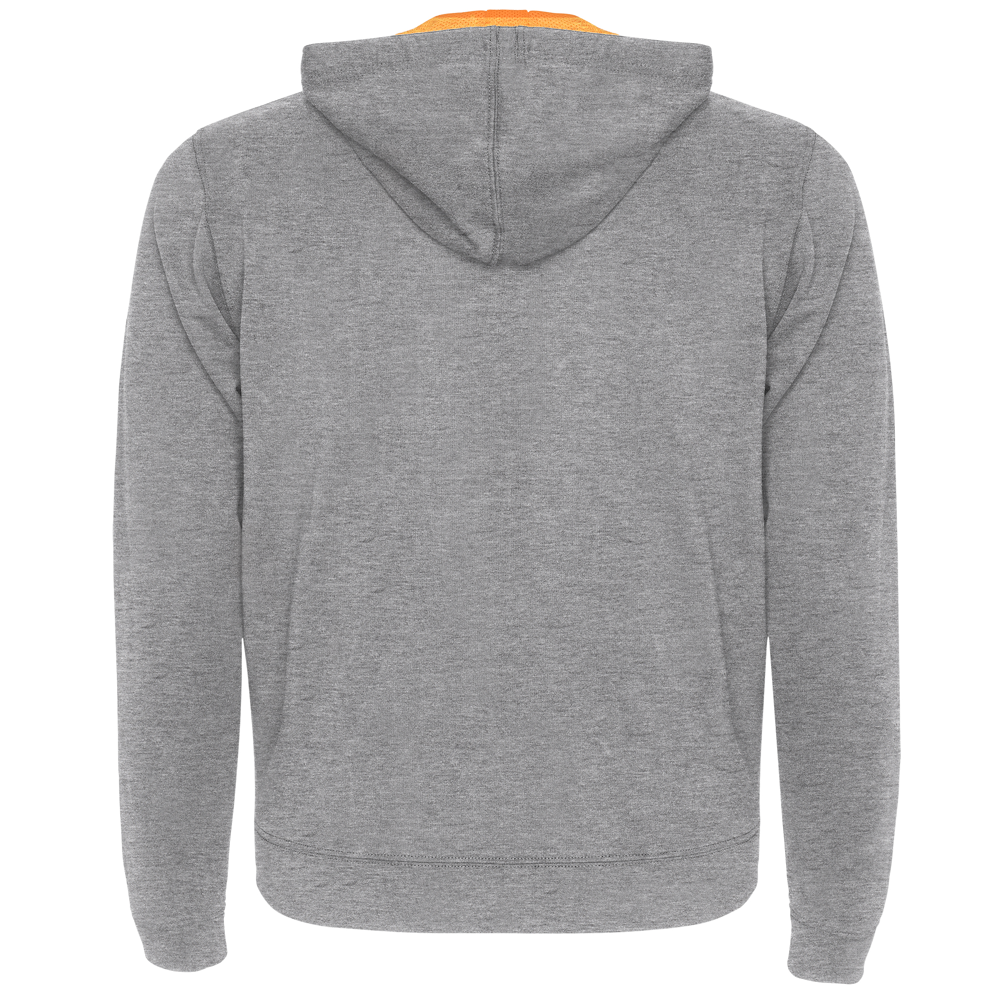 Sudadera de felpa no perchada con detalles en color flúor. Cremallera central con tirador en contraste color flúor. Capucha con forro interior en tejido de poliéster microperforado en contraste color flúor, con cordón y ojales metálicos en contraste color flúor. Manga larga con puño y cintura en punto canalé 1×1. Dos bolsillos frontales con vivo ancho. Cubrecosturas reforzado en el interior del cuello.