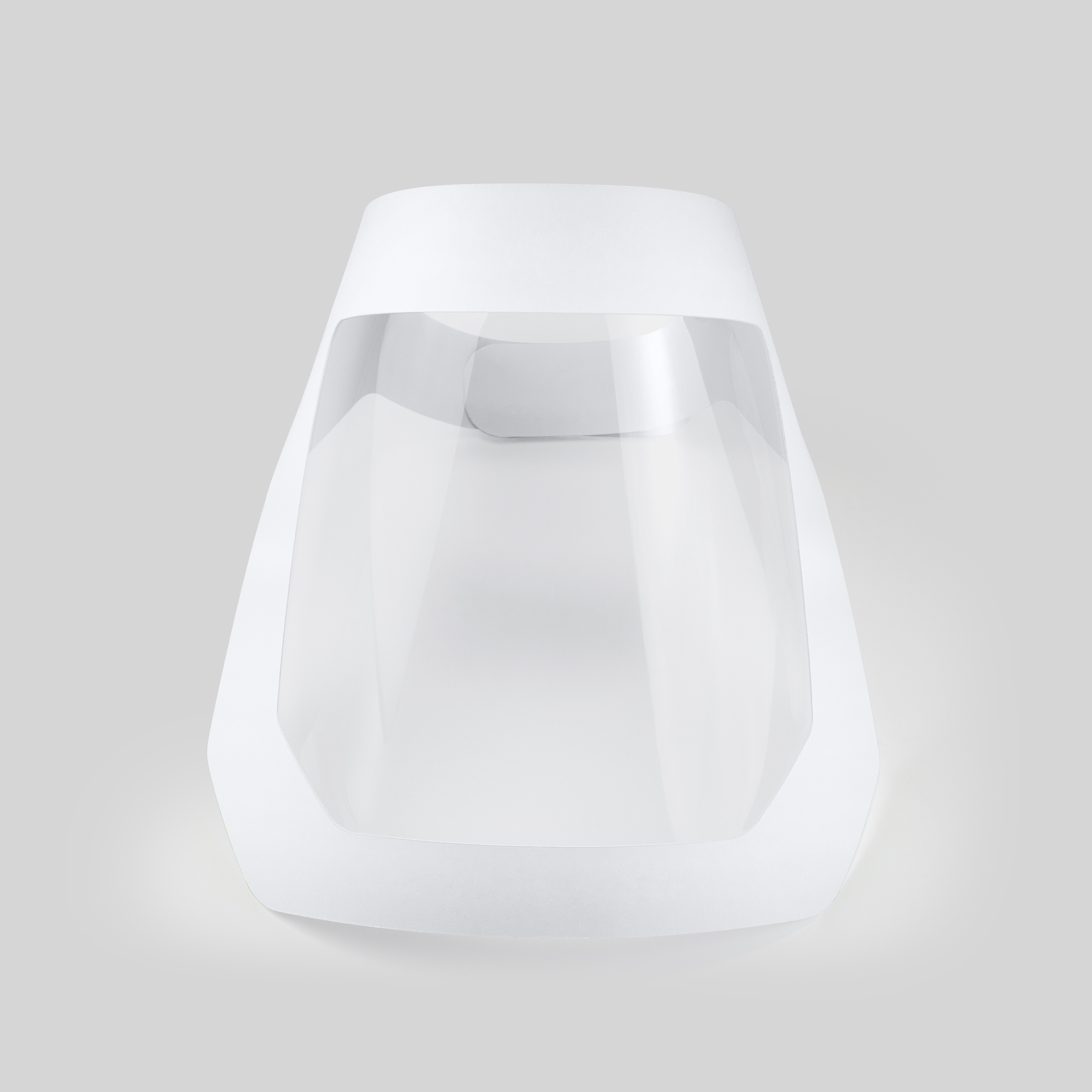 Pantalla facial reutilizable flexible y ligera. Realizada en cartón laminado blanco y PET. Fácil de personalizar. Cierre ajustable con velcro negro.Acolchado de goma espuma para un cómodo ajuste a la frente. Diseño contra salpicaduras.