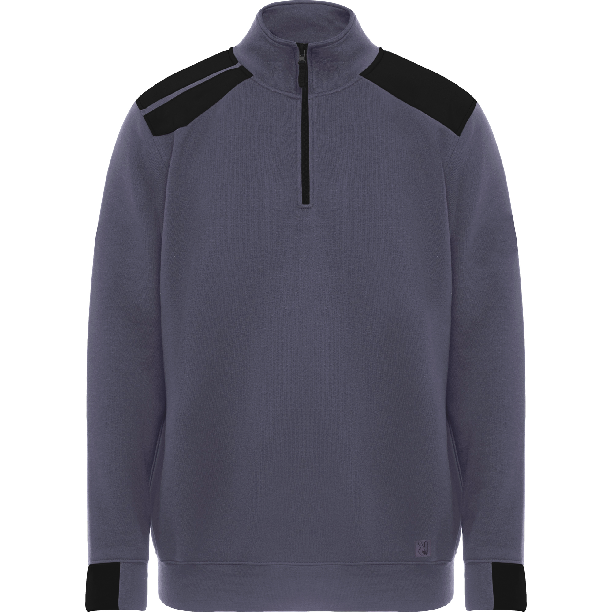Sudadera de media cremallera y cuello alto en colores combinados · Cubre costuras reforzado en el interior del cuello. · Piezas de hombros y detalles a contraste. · Mitad del puño y bajo en punto canalé 1×1.