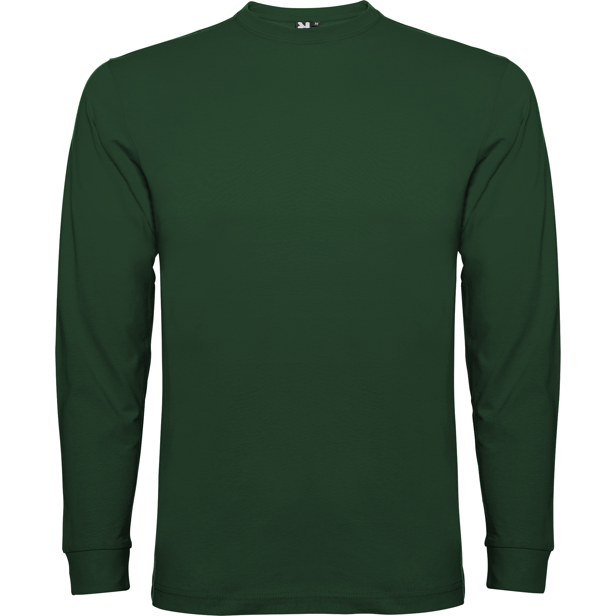 Camiseta de manga larga, tejido tubular, con cuello redondo de 4 capas y puños canalé 1×1. Cubrecosturas reforzado en cuello y hombros.