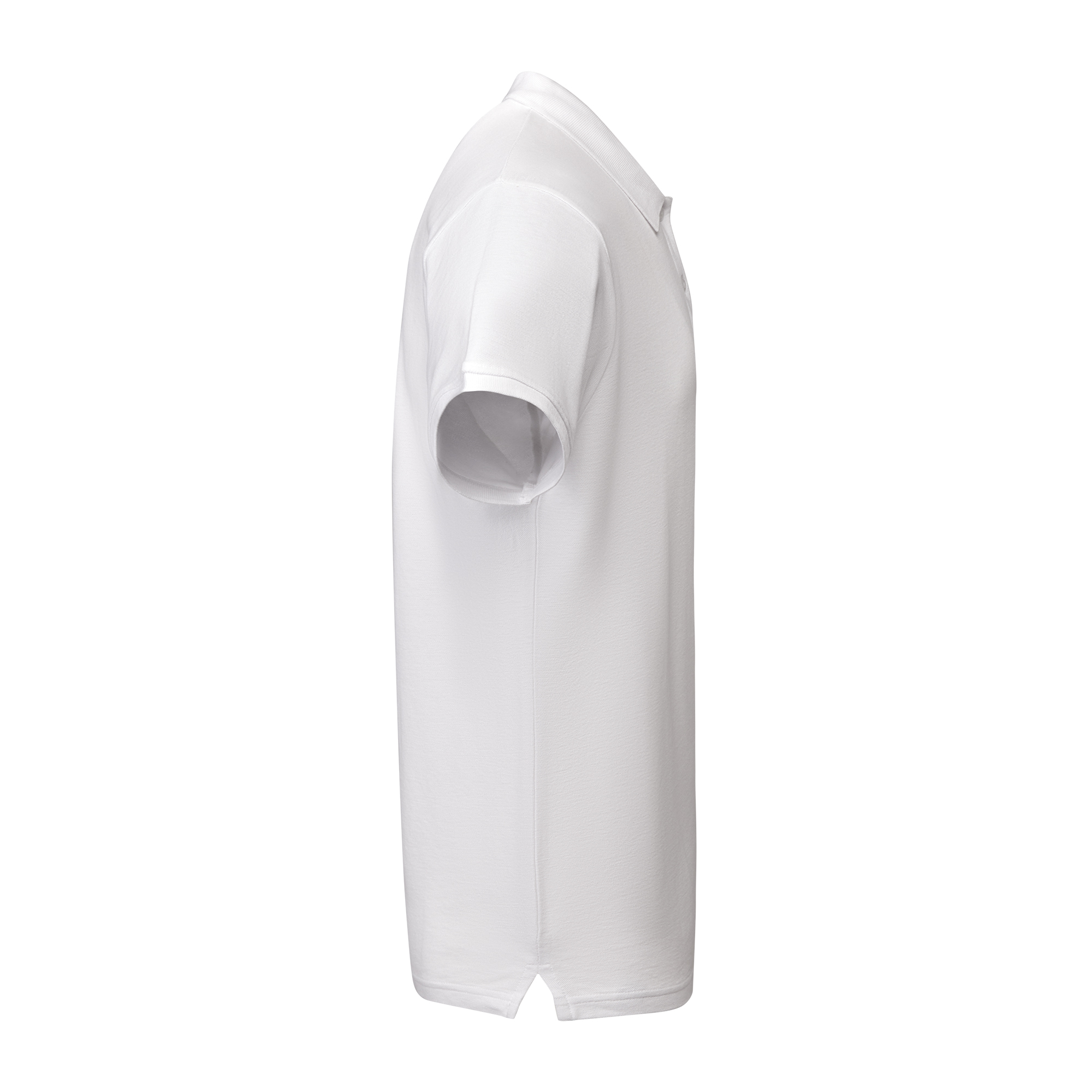 Polo de manga corta en algodón orgánico certificado OCS. Cuello y ribete de mangas en canalé 1×1. Tapeta con 2 botones. Cubrecosturas reforzado en cuello. Aperturas laterales en el bajo. Bolsillo opcional.