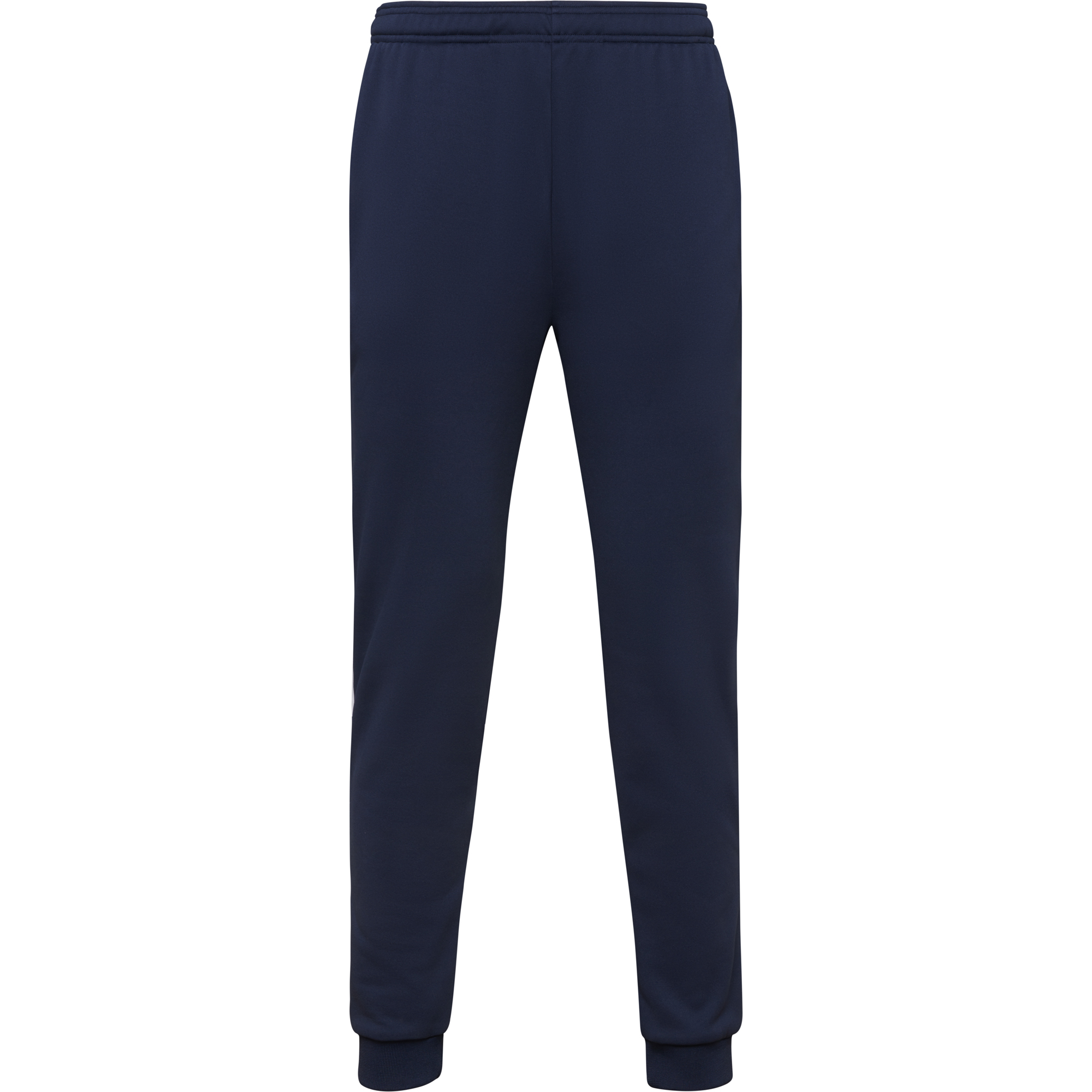 Pantalón largo de deporte con cinturilla elástica y cordón ajustable. Bolsillos laterales con cremallera. Bandas a contraste Blanco. Bajos con puño rib 1×1. Combinable con chaqueta LEROS.