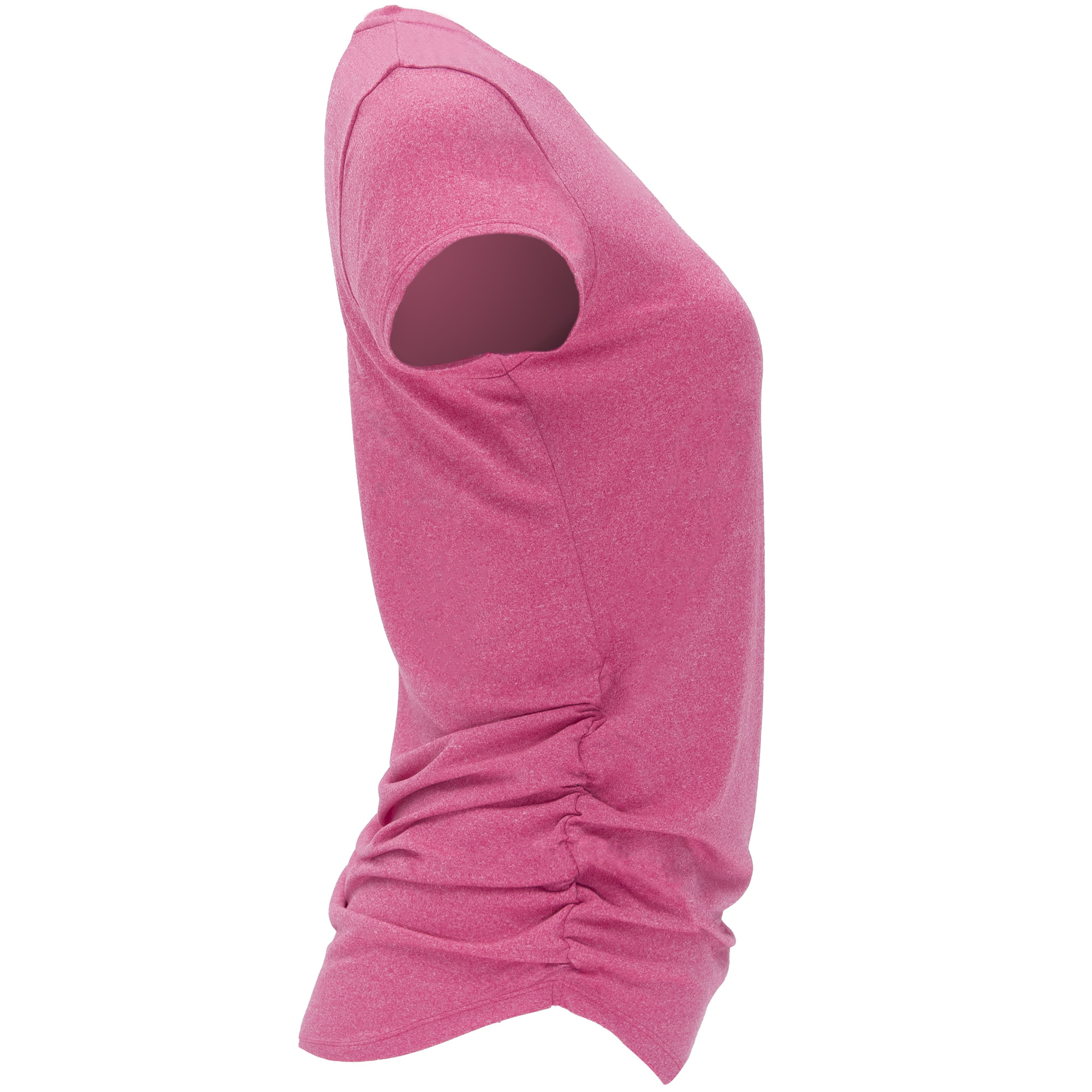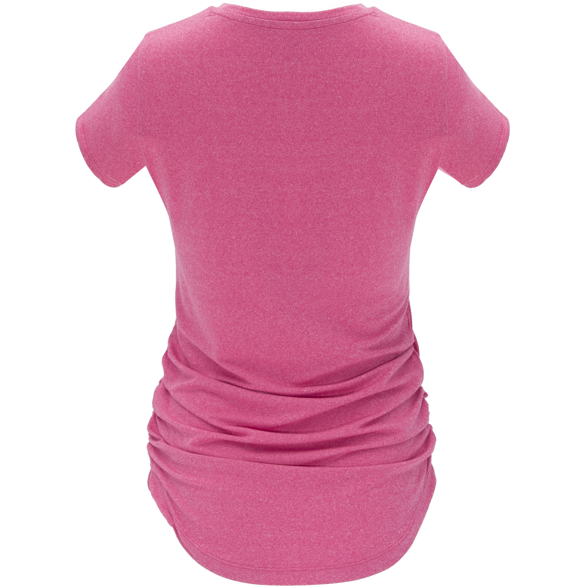 Camiseta técnica multi-deporte de manga corta para mujer. Tejido poliéster tacto algodón. Cuello redondo del mismo tejido. Laterales elásticos fruncidos para mejor adaptación al cuerpo. Corte entallado y largo especial.