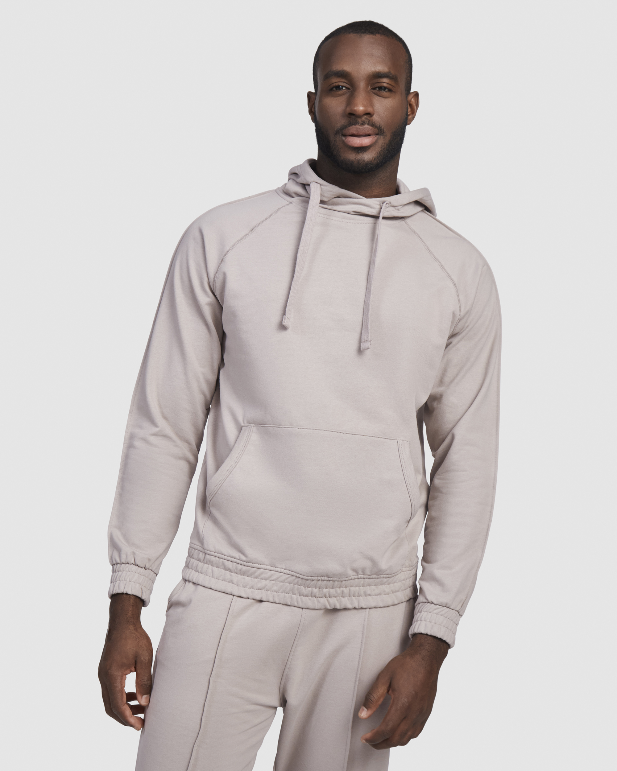 Sudadera con capucha unisex. Bolsillo canguro. Cordones planos con ojales bordados. Puños y cintura en tejido principal. Detalle de costura con relieve en mangas.