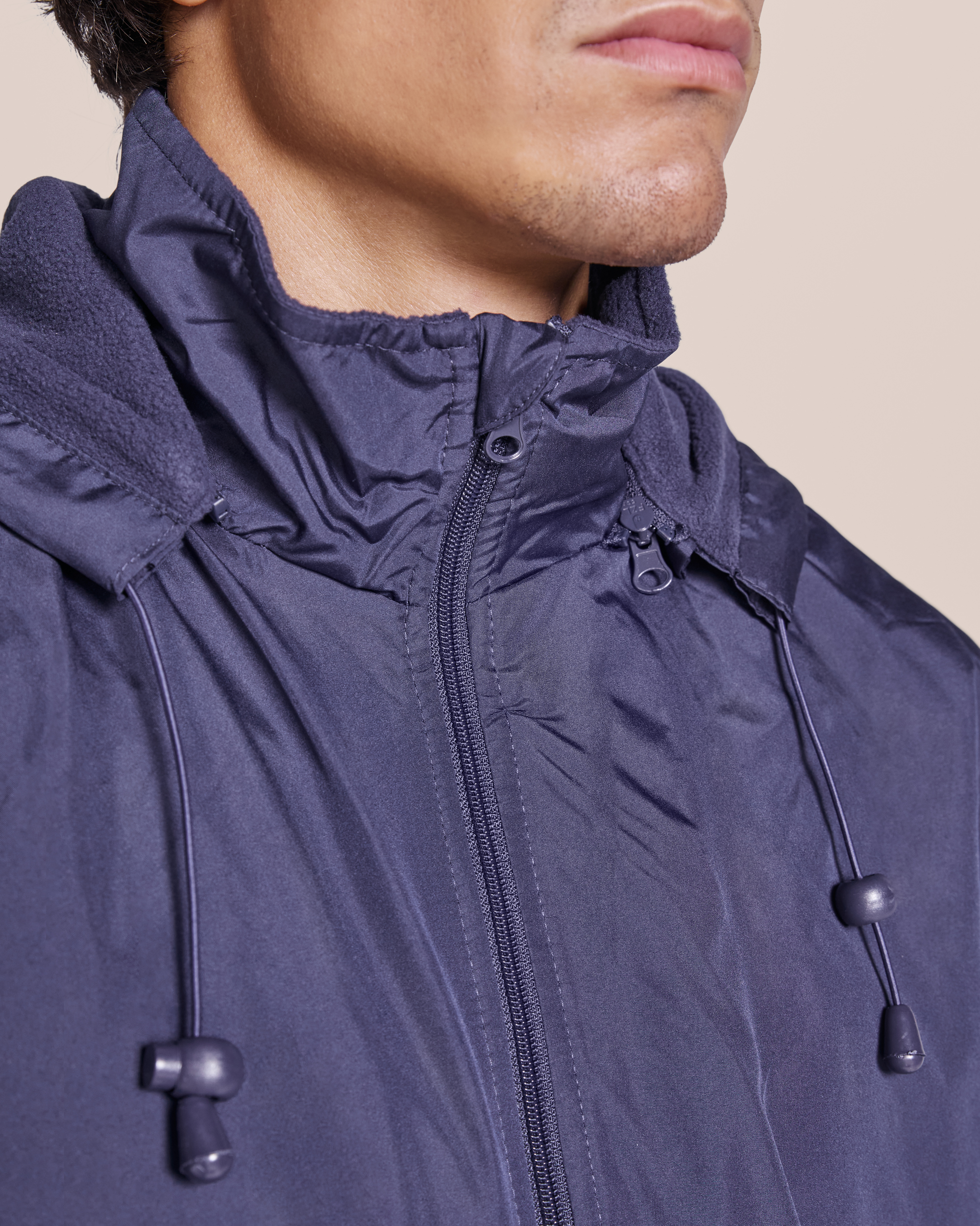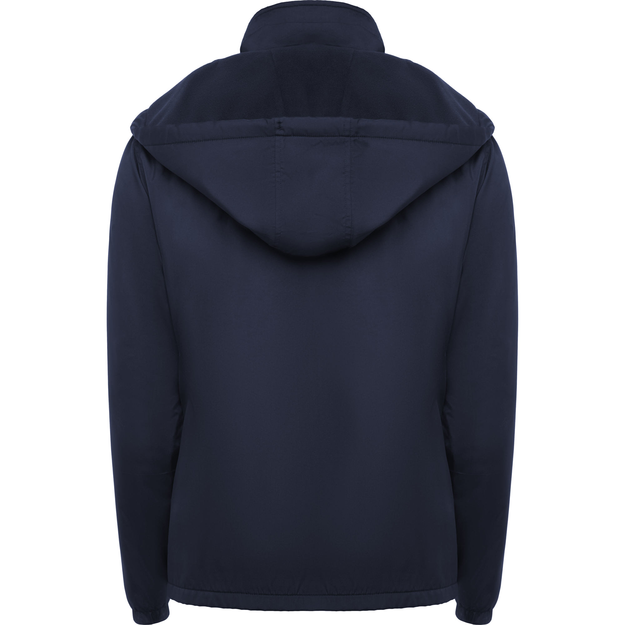 Chaqueta ligera repelente al agua. Cuello alto y capucha extraíble con ajustadores. Forro interior micropolar. ·Cremallera frontal y protector de barbilla. Puños elásticos. Dos bolsillos laterales con cremallera y un bolsillo interior en pecho izquierdo.